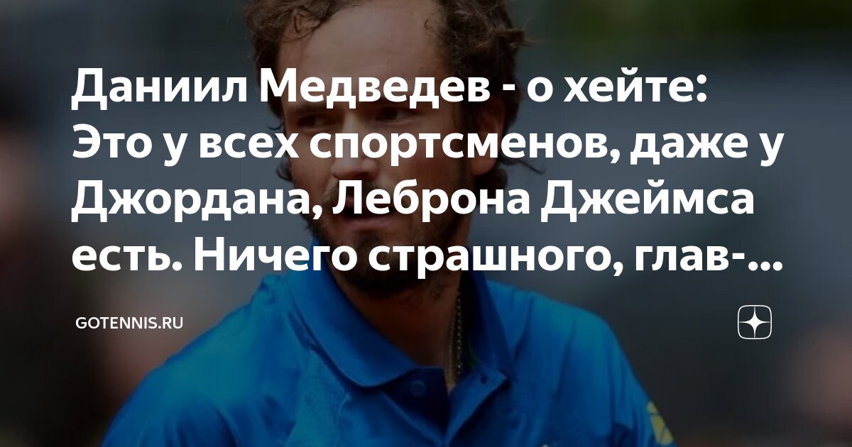 Даниил Медведев: Это особенность социальных сетей. Подобная критика встречается не только на российских платформах. Причина на самом деле очень проста: когда ты выигрываешь, все тебя обожают, а когда проигрываешь – начинаются негативные комментарии (так называемый хейт). Такая ситуация типична для всех спортсменов, даже для легендарных личностей вроде Майкла Джордана или Леброна Джеймса. В этом нет ничего ужасного; самое главное для меня – сконцентрироваться и начать играть лучше.